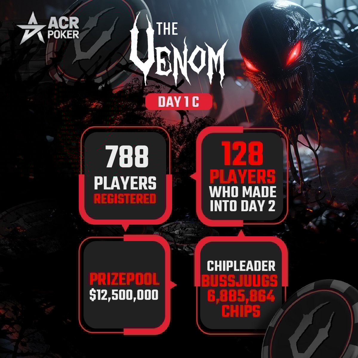 It was another big weekend for our $12.5 Million GTD Venom, with 788 entrants for yesterday’s Day 1C. We’re currently sitting at 2,889 total entrants for our biggest tourney ever, which is a very good turnout, but it looks like there could be a value-driven overlay for our players.