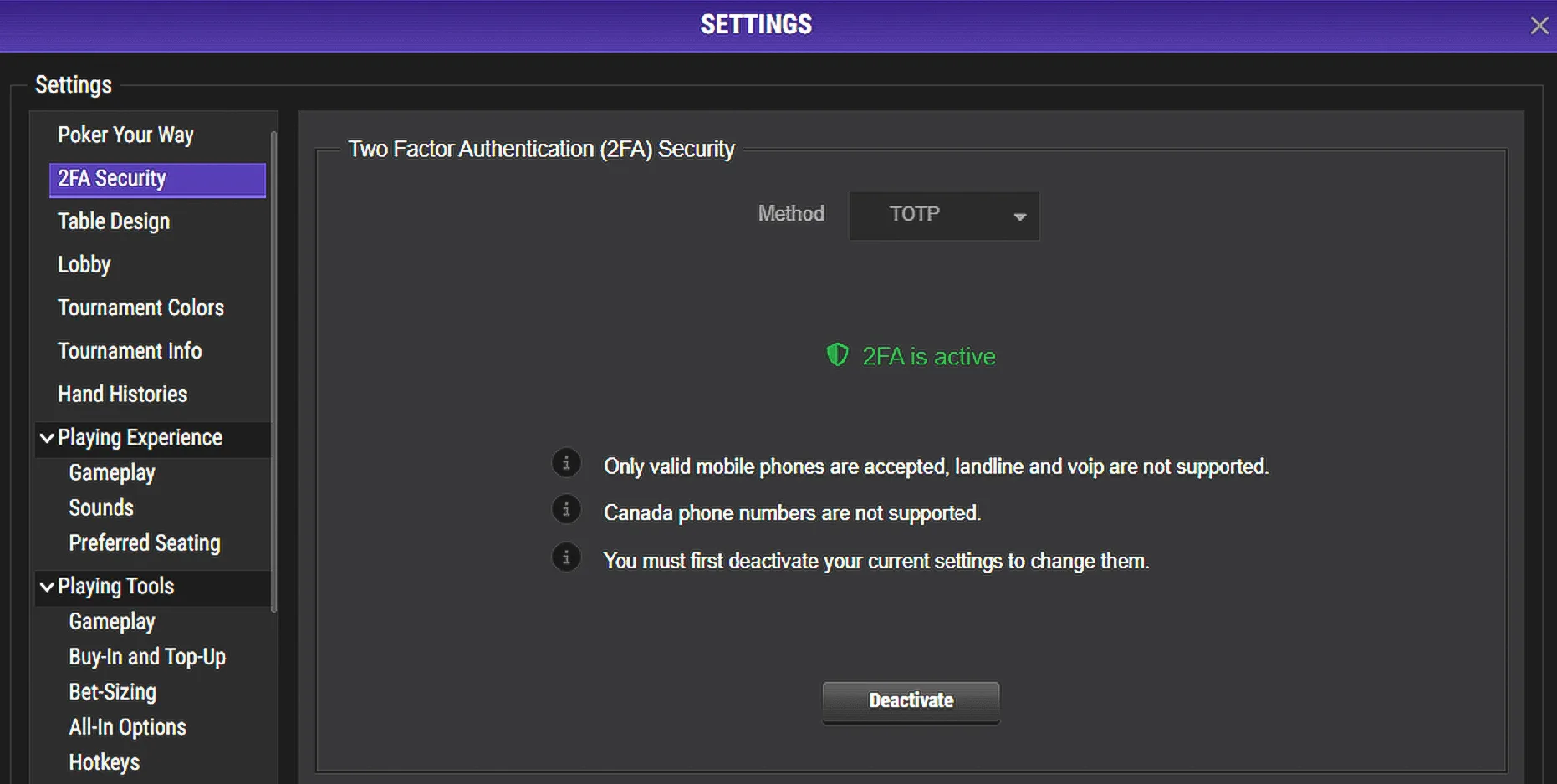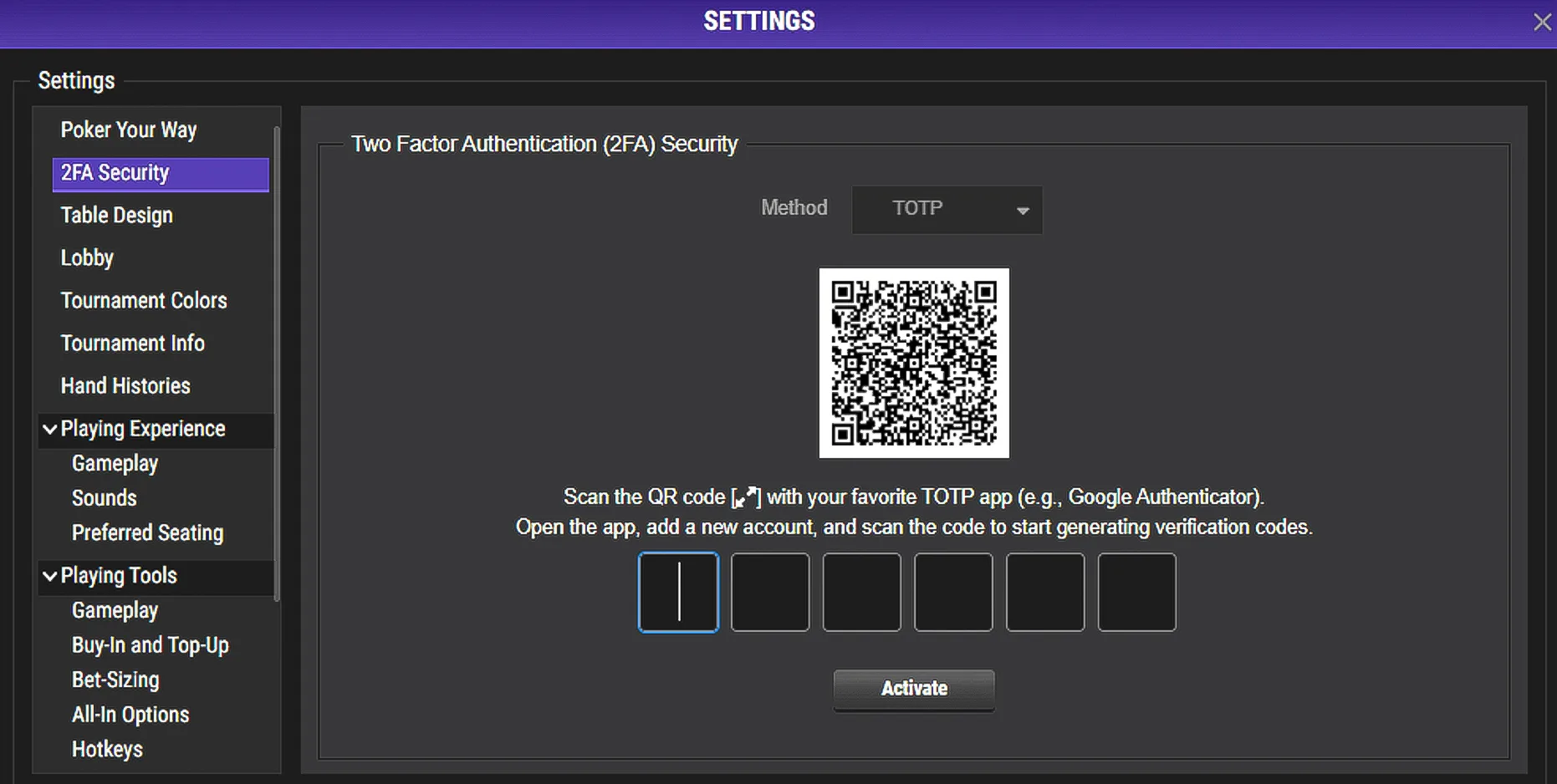 2-Factor Authentication for Payouts Home > Policies > 2-Factor Authentication for Payouts We’re pleased to introduce Email 2-Factor Authentication (2FA) on all payouts. This extra layer of security helps protect your funds and keep your ACR Poker account safe by confirming every withdrawal request through a unique code sent to your email. How Email 2-Factor Authentication Works for Withdrawals Step 1 – Request your withdrawalSubmit your withdrawal request as usual from the cashier section of the client.Right after that, check the email address registered to your ACR Poker account. You’ll receive a 4-digit verification code for Email 2FA.Step 2 – Enter your 4-digit codeAt the bottom of your screen, you’ll see a field asking you to enter the 4-digit code.Type in the code from your email and confirm your withdrawal. MOBILE VIEW: DESKTOP VIEW: Important: Your 4-digit verification code expires in 5 minutes. If it expires, just request a new code by restarting the withdrawal process. Activating 2FA Security to Update Your Email Address If the email address on your account is old, incorrect, or no longer valid, you can update it directly from the poker client—but only if you have 2FA enabled.Step 1 – Open 2FA Security SettingsFrom the Settings menu in the client, click on “2FA Security.”Step 2 – Activate TOTPIn the 2FA Security area:From the dropdown menu, select “TOTP”.Click “Activate” to enable 2-Factor Authentication on your account.Scan the 2FA Security QR Code with your favorite TOTP app to start generating verification codes on your account.Enter the 6-digit code from your authenticator app and click “Activate”. Step 3 – Update Your Email in the Poker Client.Updating Your Email from the My Account SectionOnce TOTP 2FA is activated:Go to the My Account section.Click on “Account Information.”Find the “Email:” field.Click the pen/edit icon next to your email and add the New Email.Once you’ve added the new email, press CONTINUE.Retrieve the code from your email.Enter the code.After you enter the code, confirm your change of email using the one-time token from your Authenticator app.You will then be logged out. Log in again using your new email and your email will be successfully updated.Note: You must have 2-Factor Authentication activated on your account in order to update your email address.If you have any problems or need assistance with any of this process, please contact support@winningpokernetwork.com